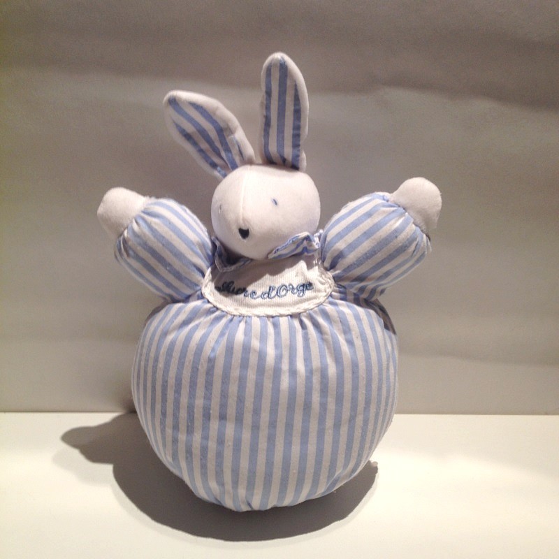 Doudou Lapin Boule Rayé Blanc et Bleu Sucre d Orge