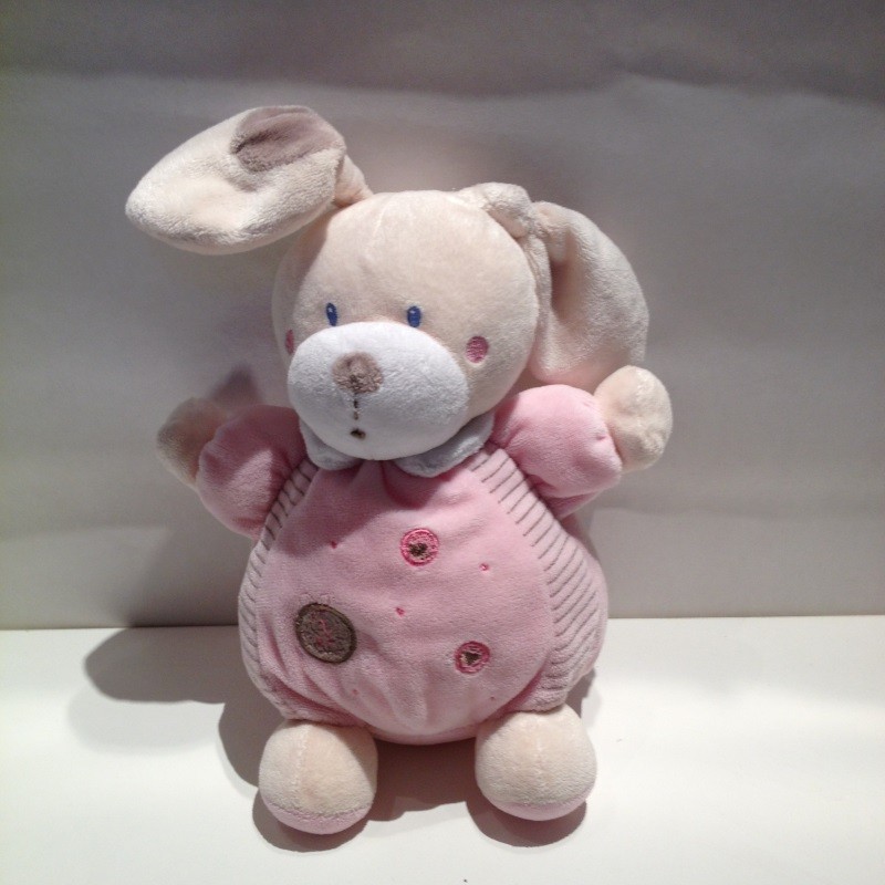 Doudou Lapin Boule Rose 3 Points 28cms Nicotoy