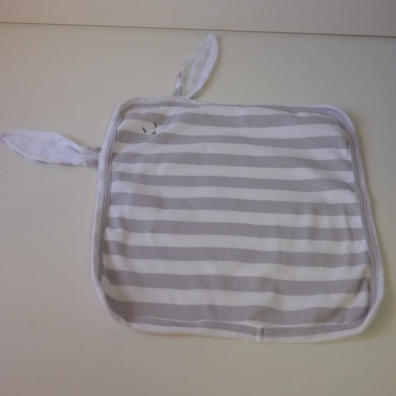 Doudou Lapin Carré Coton Plat Rayé Blanc et Gris Petit Bateau