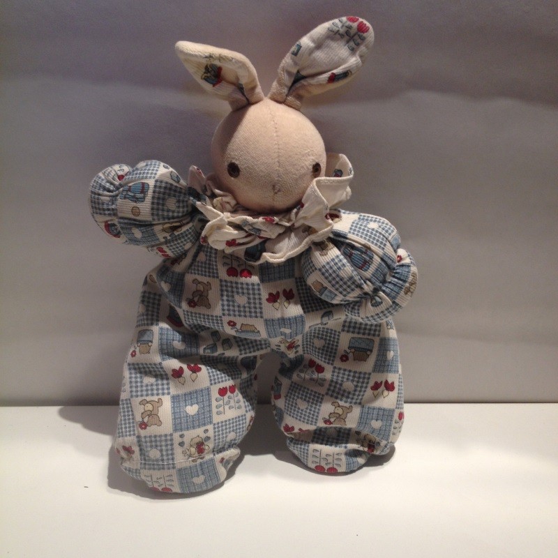 Doudou Lapin Coton Blanc et Bleu Moulin Roty