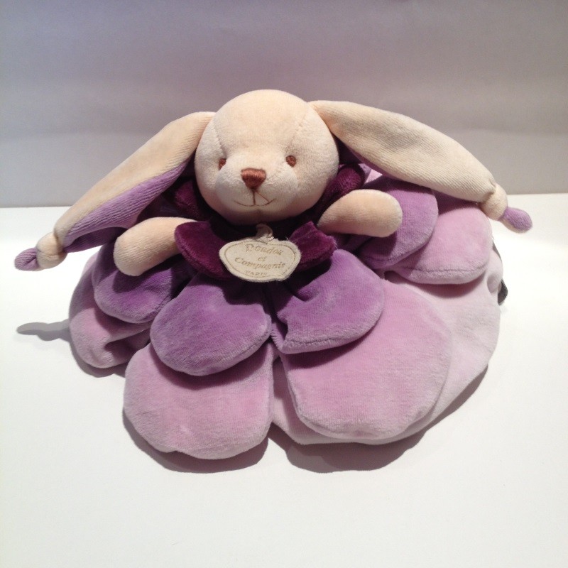 Doudou Lapin Coussin Fleur Mauve Fleur Doudou et Compagnie