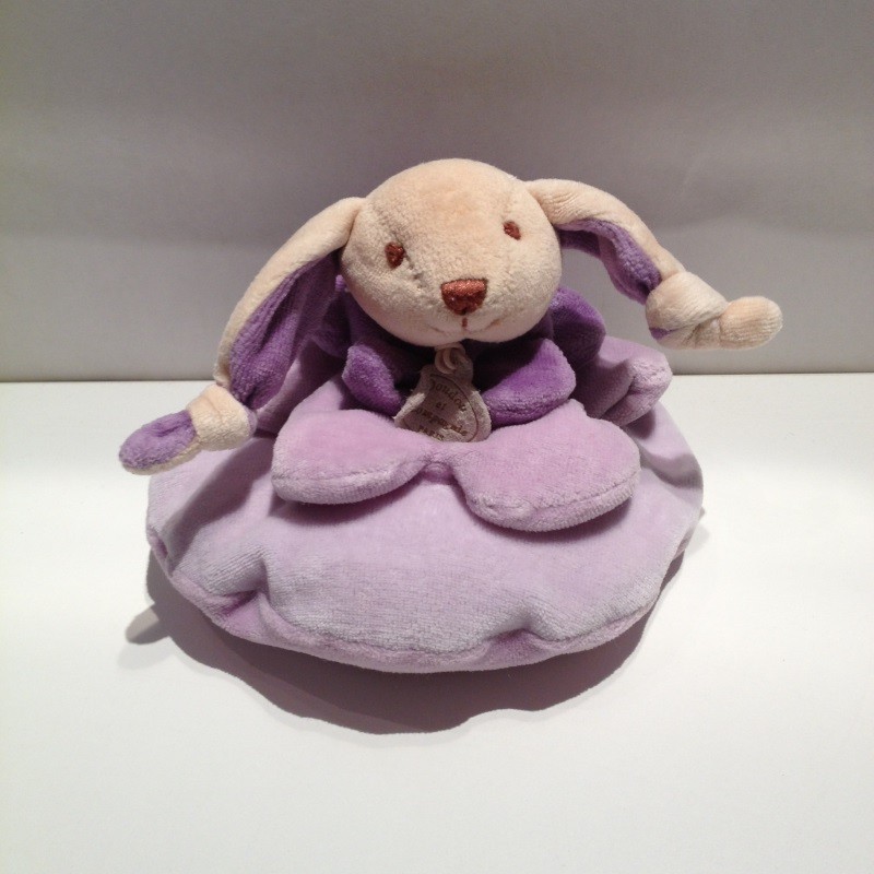 Doudou Lapin Coussin Fleur Mauve PM Doudou et Compagnie