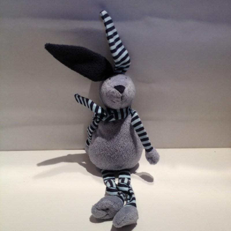 Doudou Lapin Gris Rayé Bleu Bout Chou
