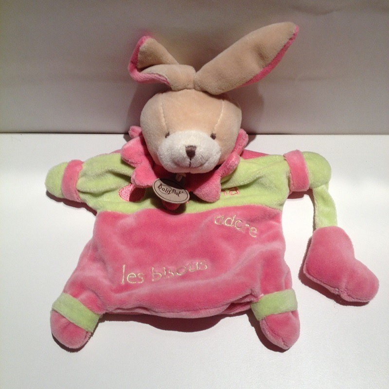 Doudou Lapin Marionnette Rose et Vert Fiona Babynat