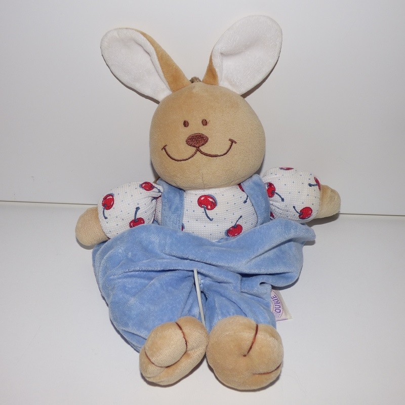 Doudou Lapin Musical Blanc et Bleu Cerises Noukie s