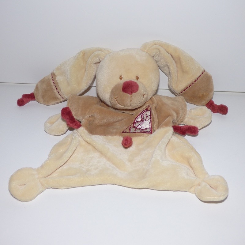 Doudou Lapin Plat Beige et Bordeaux Kiabi