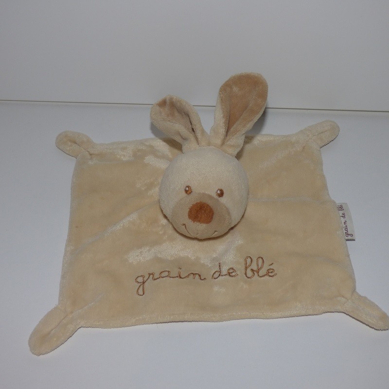 Doudou Lapin Plat Beige et Ecru Grain de Blé