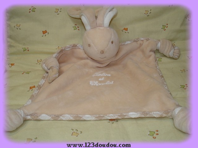 Doudou Lapin Plat Beige Tartine et Chocolat
