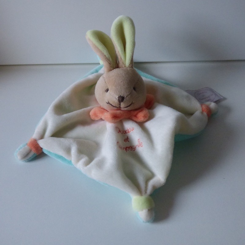 Doudou Lapin Plat Blanc Col Orange Mini Acidulé Doudou et Compagnie