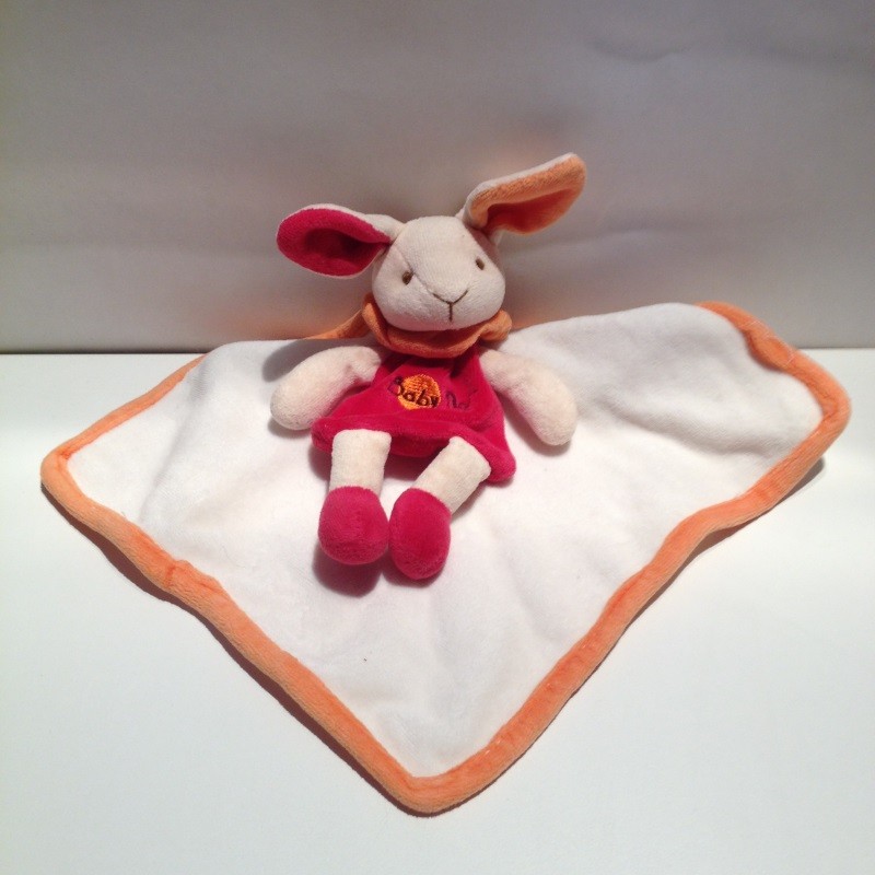 Doudou Lapin Plat Blanc Contour Orange Babynat
