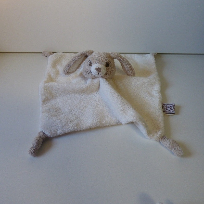 Doudou Lapin Plat Blanc et Beige Téo et Ines