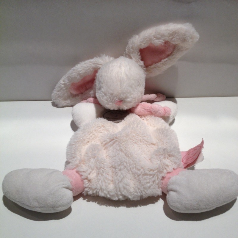 Doudou Lapin Plat Blanc et Rose Doudou et Compagnie