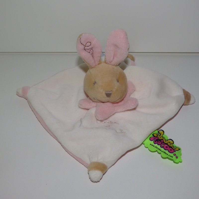Doudou Lapin Plat Blanc et Rose Tatoo Acidulé Doudou et Compagnie