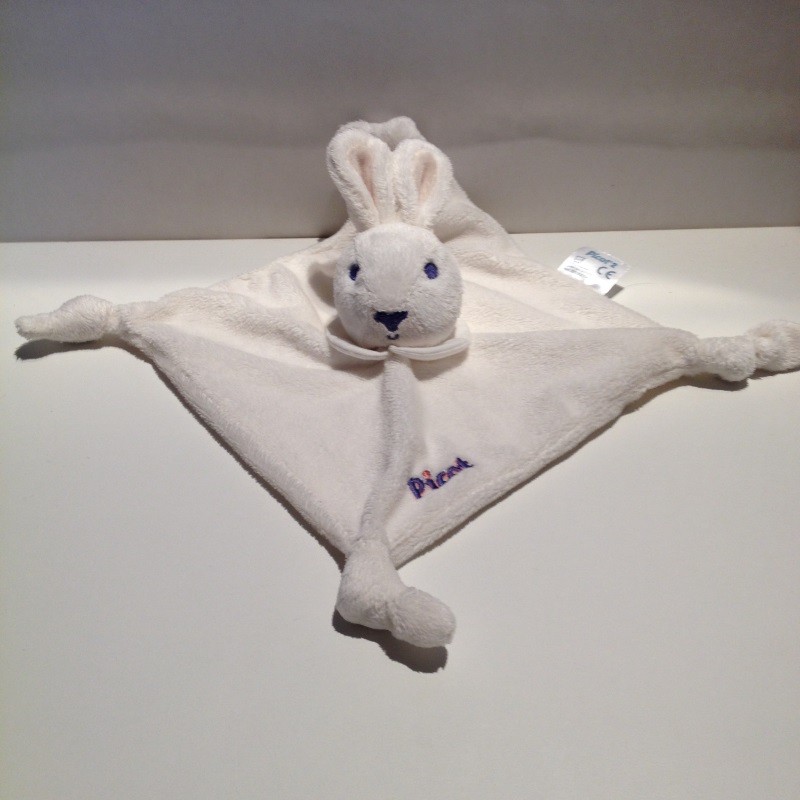 Doudou Lapin Plat Carré Blanc et Rose Teenie Star