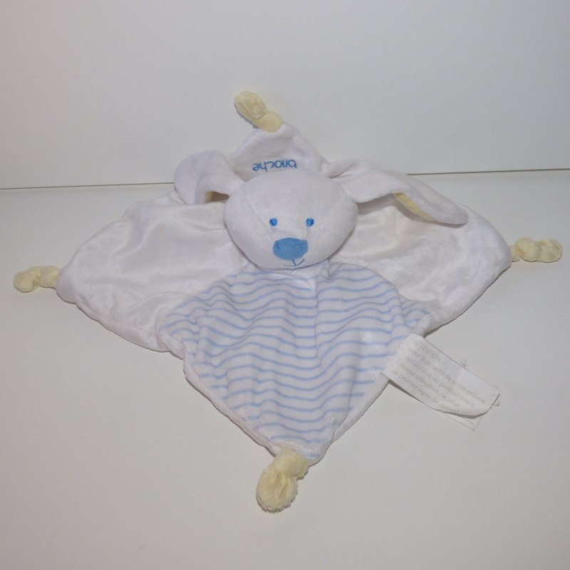 Doudou Lapin Plat Blanc Rayé Bleu Brioche Kimbaloo
