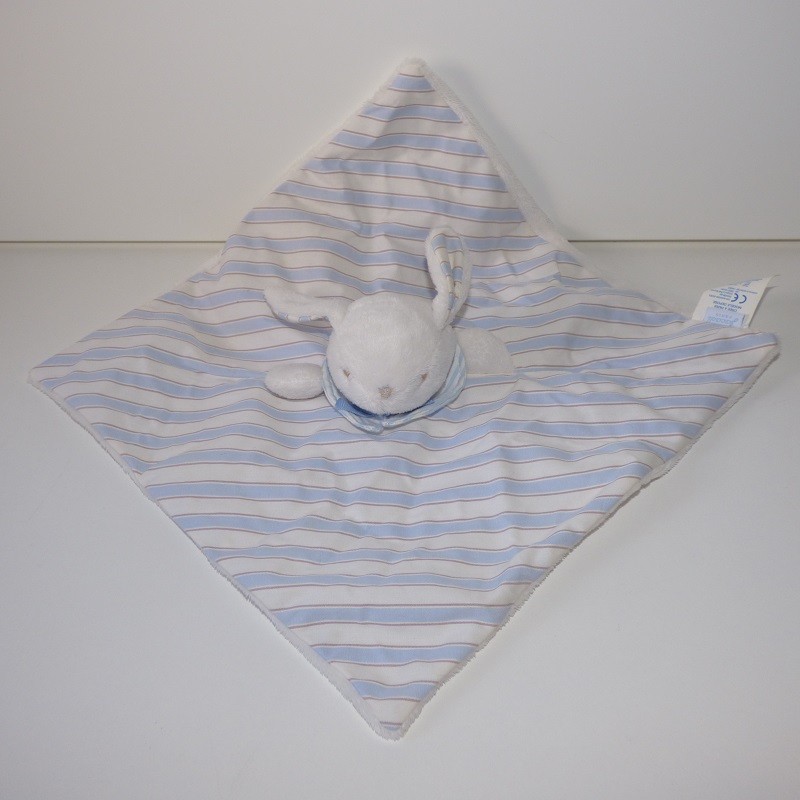 Doudou Lapin Plat Blanc Rayé Bleu Jacadi