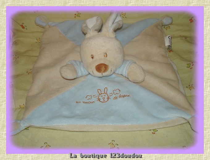 Doudou Lapin Plat Bleu et Beige Un amour de lapin Vétir