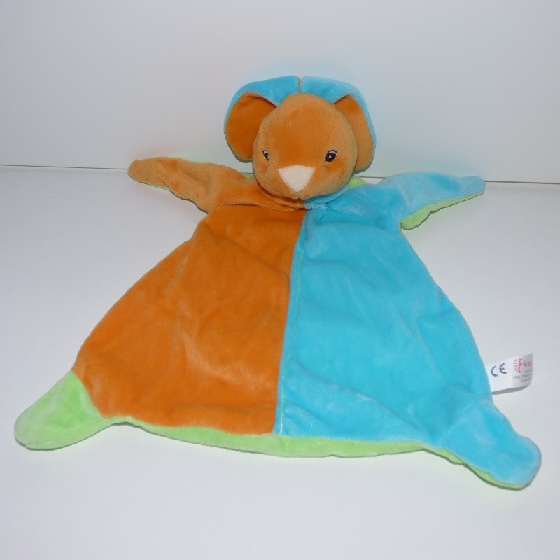 Doudou Lapin Plat Bleu et Orange Toi Toys