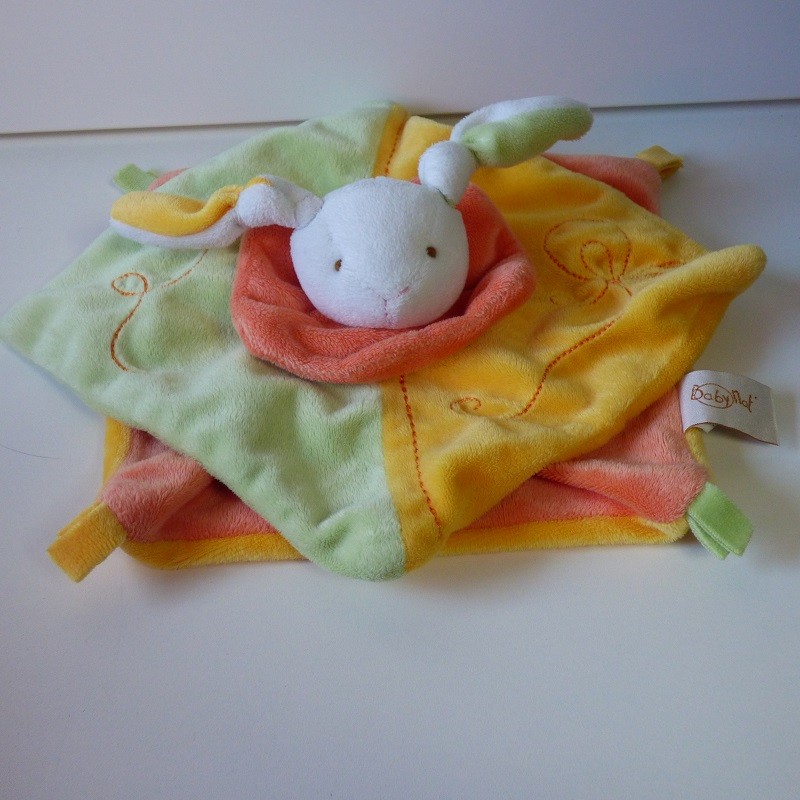 quantité de Doudou Lapin Plat Carré Orange et Vert Babynat