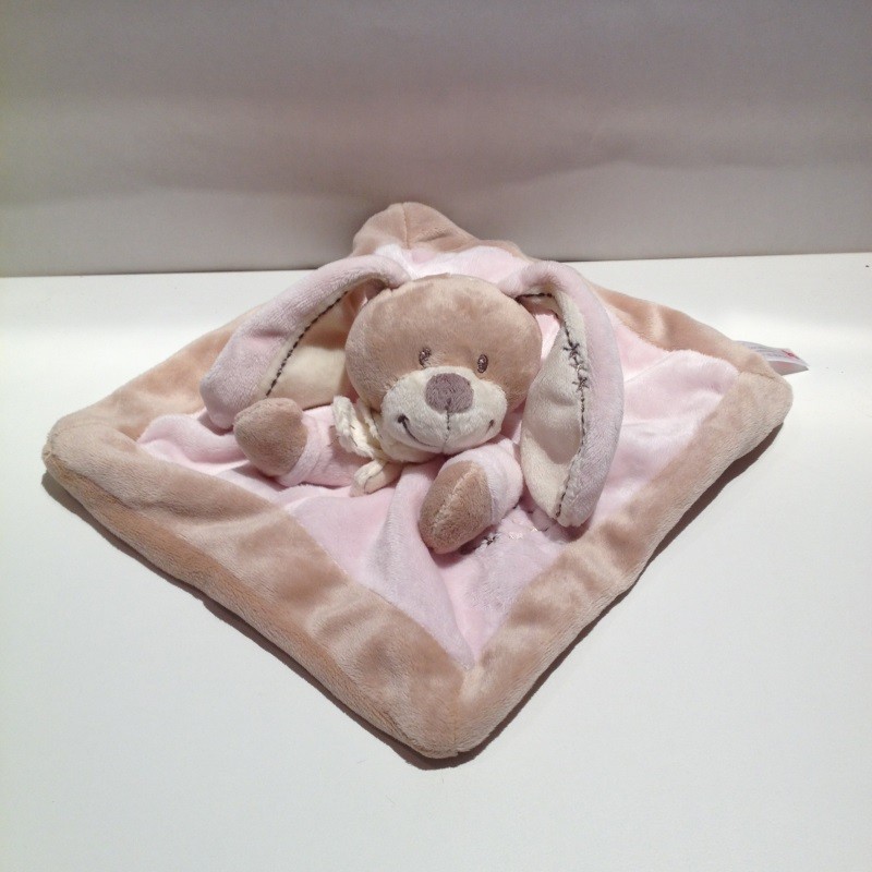 Doudou Lapin Plat Carré Rose et Beige Nicotoy