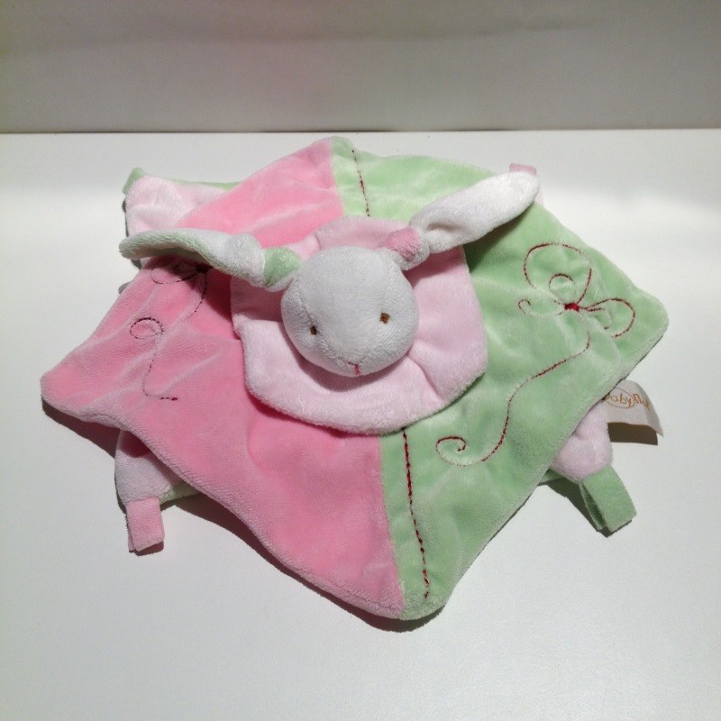 Doudou Lapin Plat Carré Rose et Vert Babynat