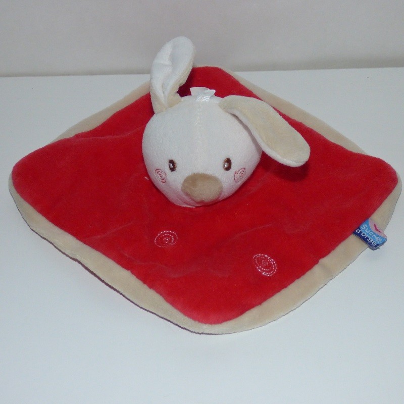 quantité de Doudou Lapin Plat Carré Rouge Sucre d Orge