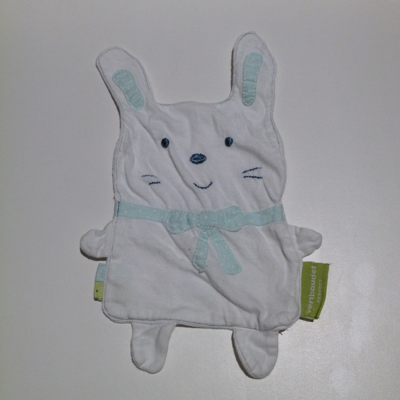 Doudou Lapin Plat Coton Blanc Vert Baudet