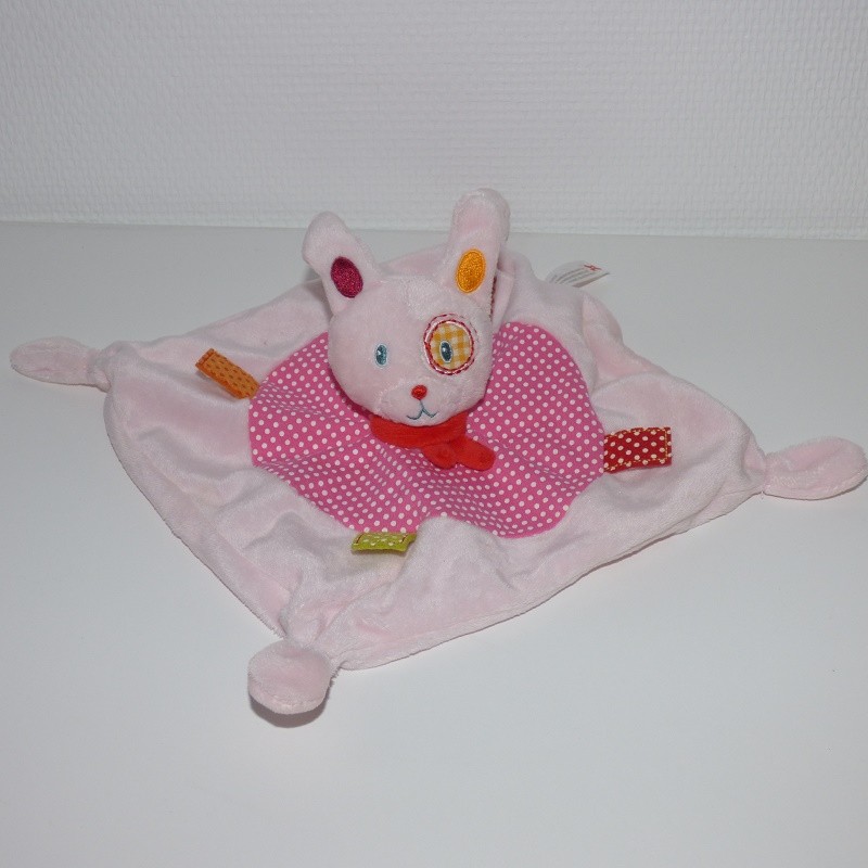 Doudou Lapin Plat Crarré Rose Nicotoy
