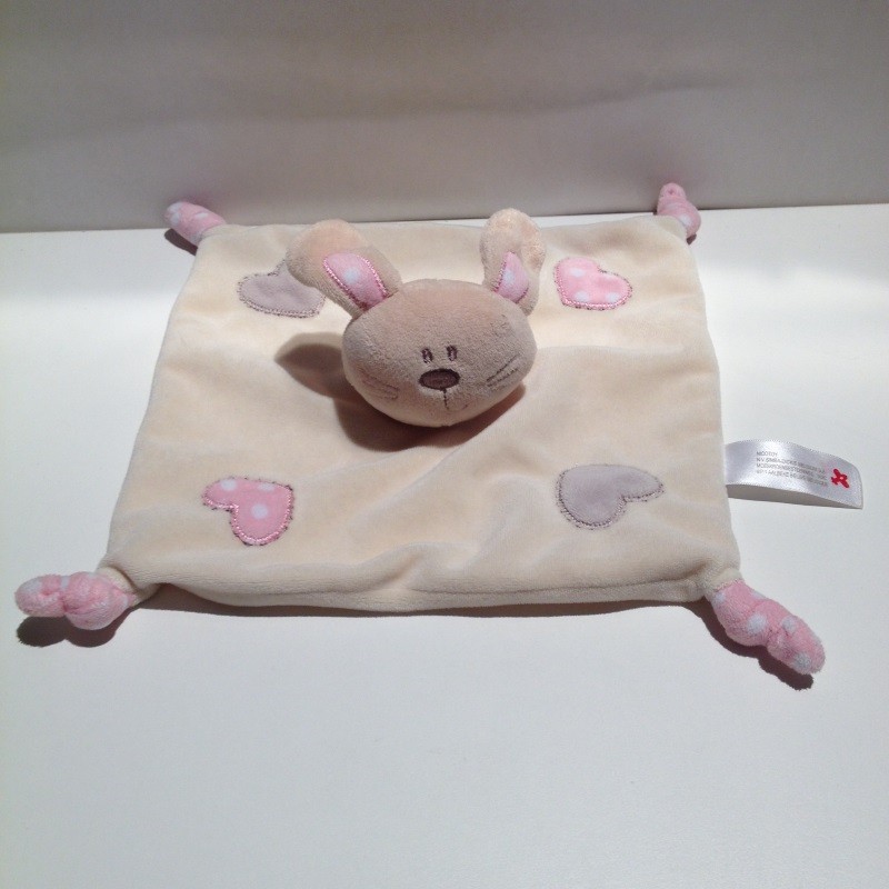 quantité de Doudou Lapin Plat Ecru Broderie Coeur Nicotoy