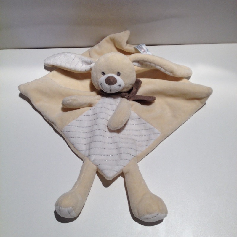 Doudou Lapin Plat Ecru et Blanc Nicotoy