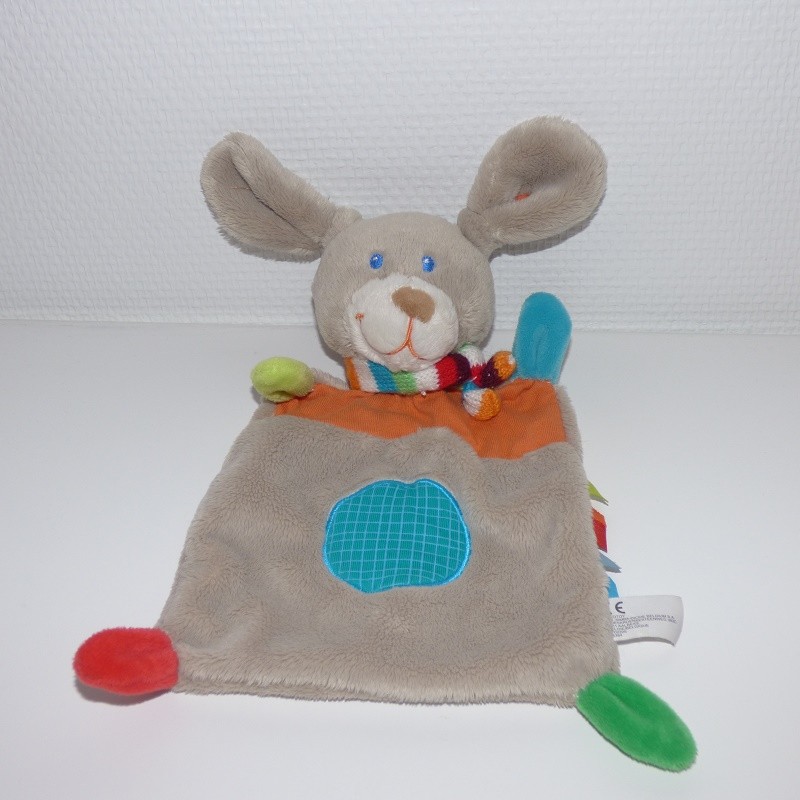 Doudou Lapin Plat Gris et Orange Nicotoy