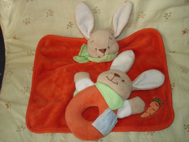 quantité de Doudou Lapin Plat Orange Comptine TBE