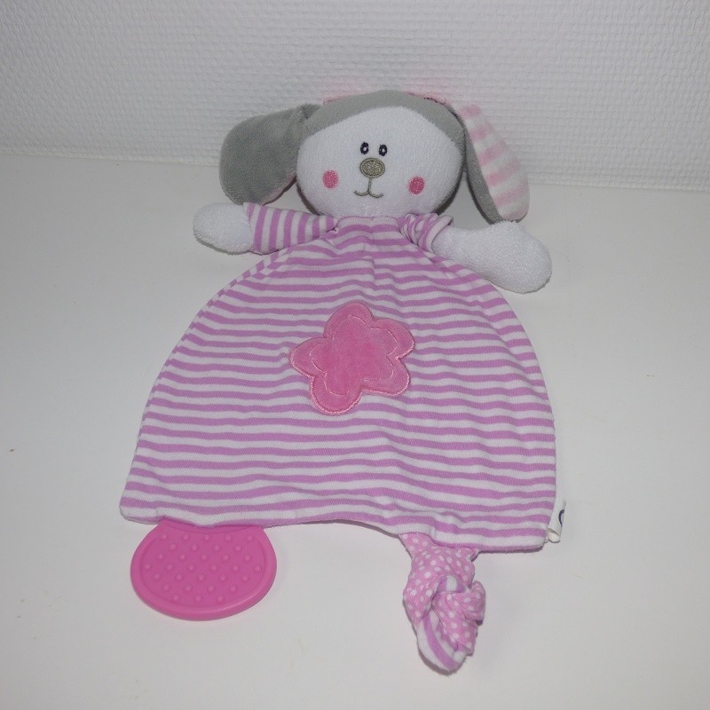 Doudou Lapin Plat Rayé Mauve et Rose Maxita