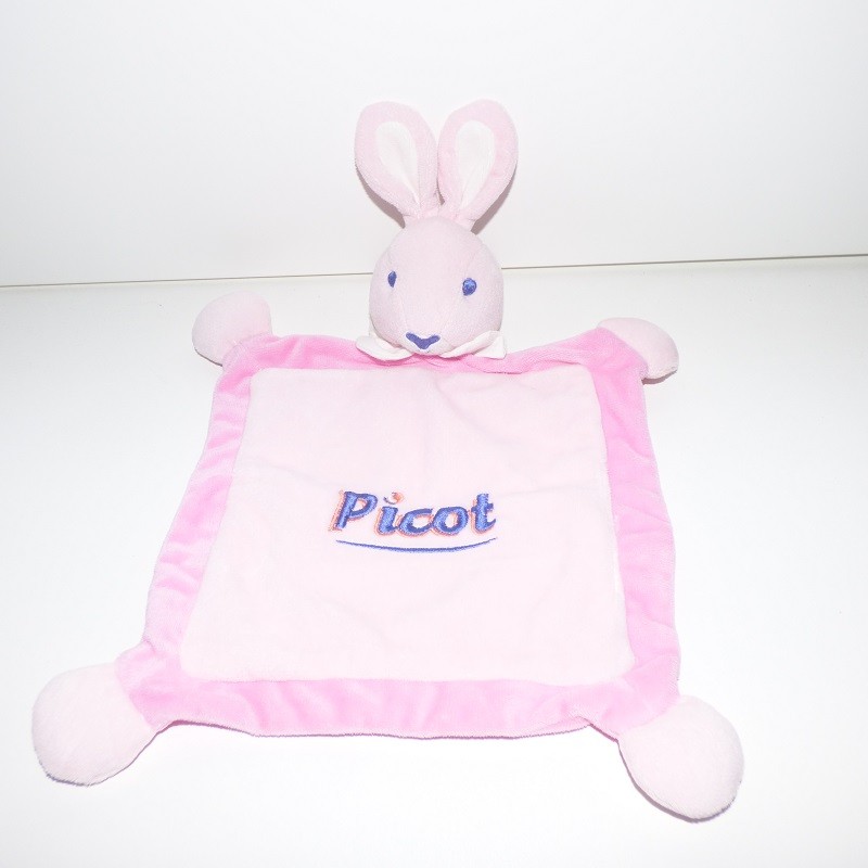 quantité de Doudou Lapin Plat Rose (2 tons) Picot