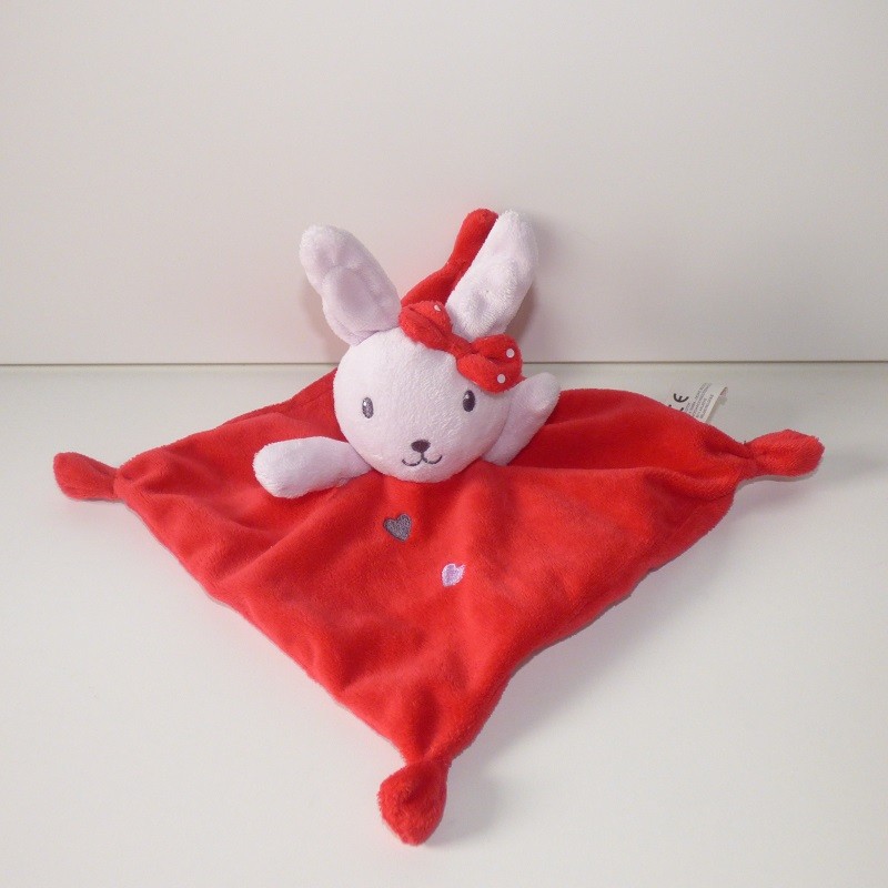 Doudou Lapin Plat Rose Broderie Coeur Nicotoy