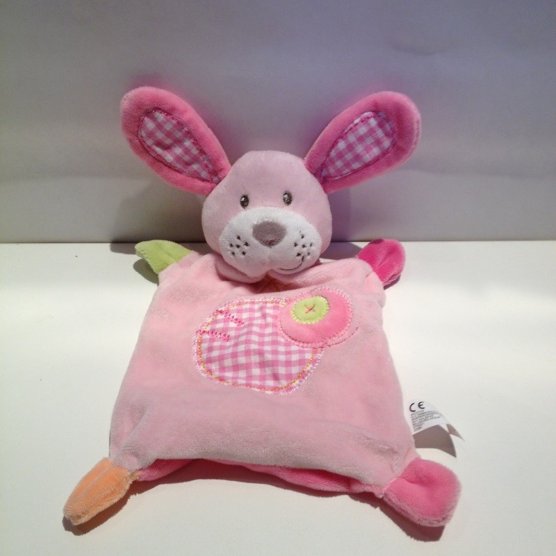 Doudou Lapin Plat Rose Broderie Rond Nicotoy