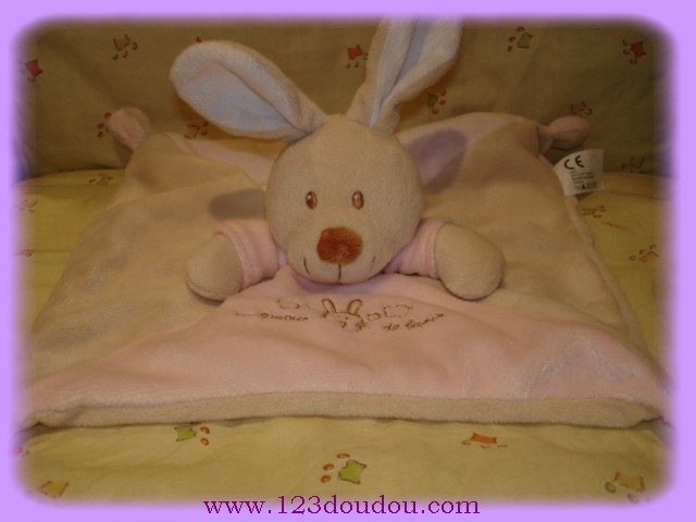 Doudou Lapin Plat Rose et Beige Un amour de Lapin Vétir