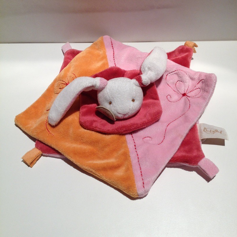 quantité de Doudou Lapin Plat Rose et Orange Babynat