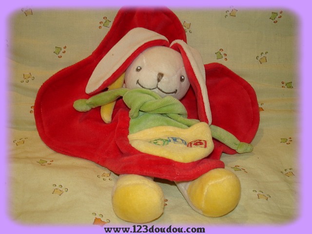 Doudou Lapin Plat Rouge Léo Nounours