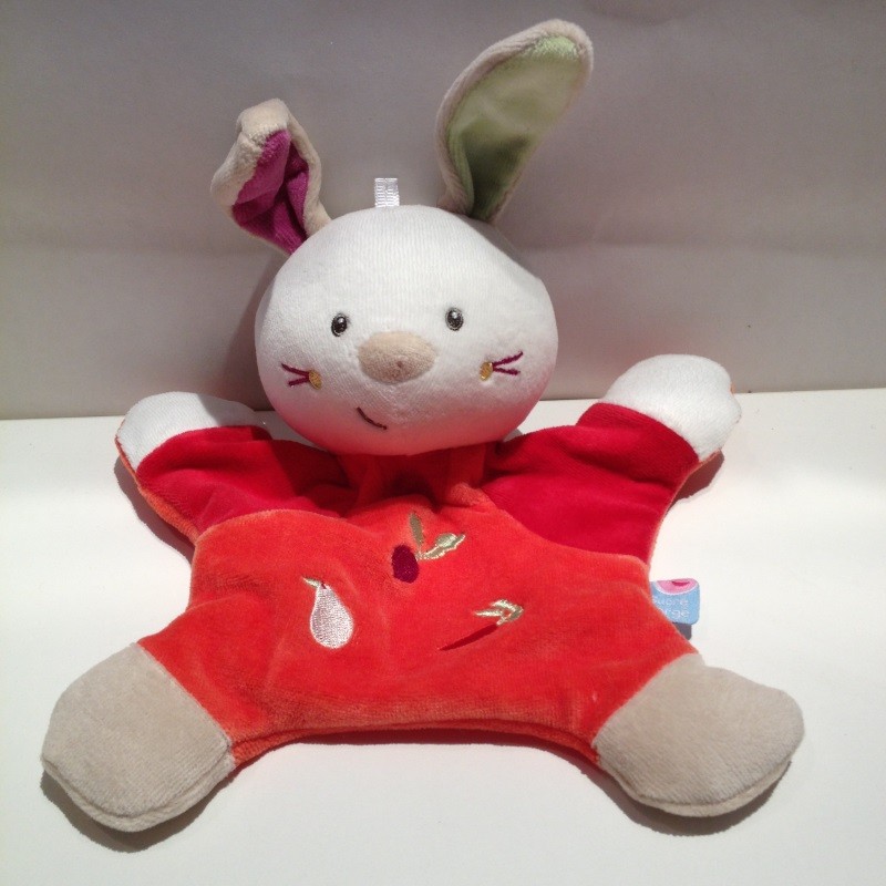 Doudou Lapin Plat Rouge Sucre d Orge