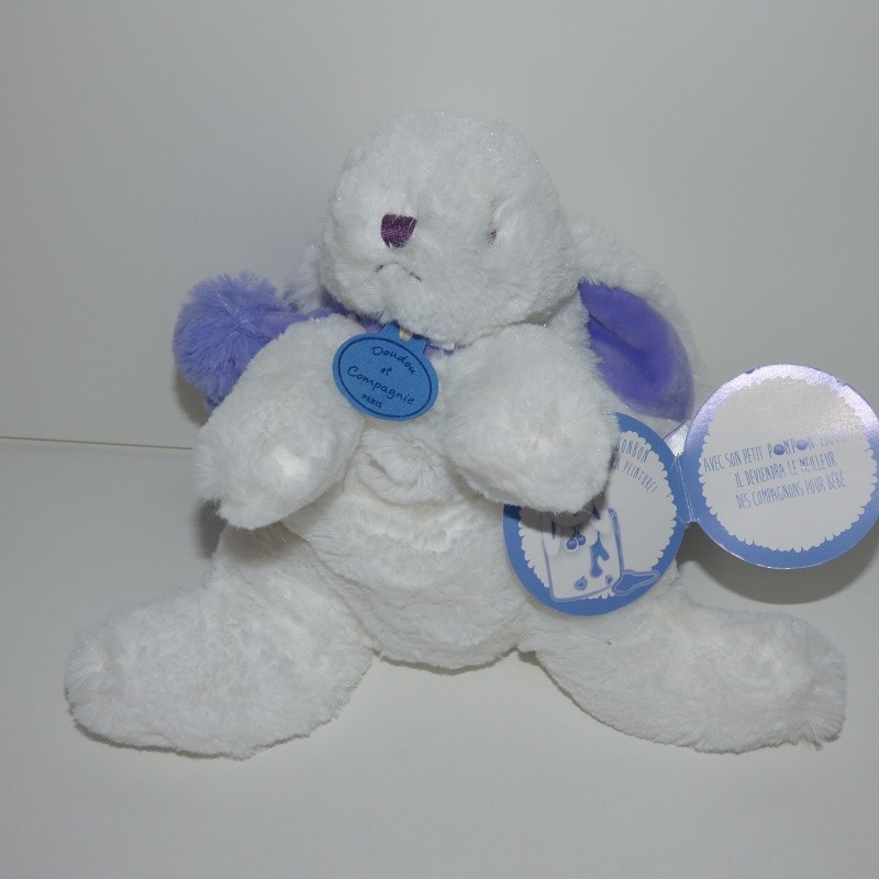 Doudou Lapin Pompon Blanc et mauve 25 cms Doudou et Compagnie