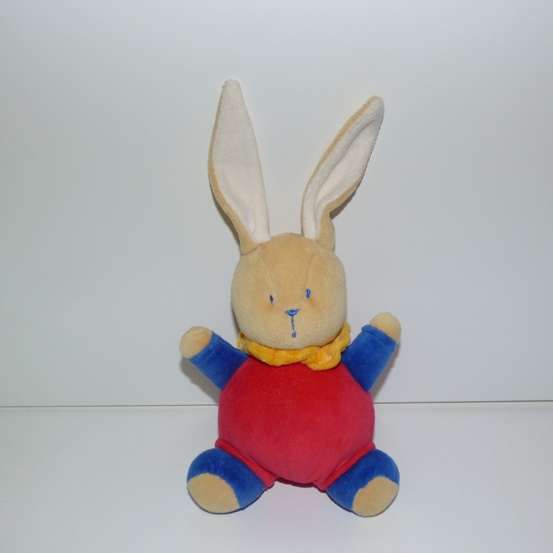 Doudou Lapin Rouge et Bleu Grelot Bengy
