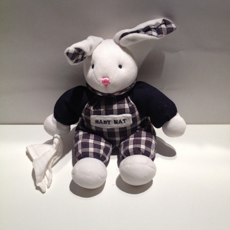 Doudou Lapin Vichy Bleu Mouchoir Babynat