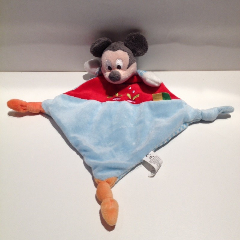 Doudou Mickey Plat Rouge et Bleu Broderie Arrosoir Disney