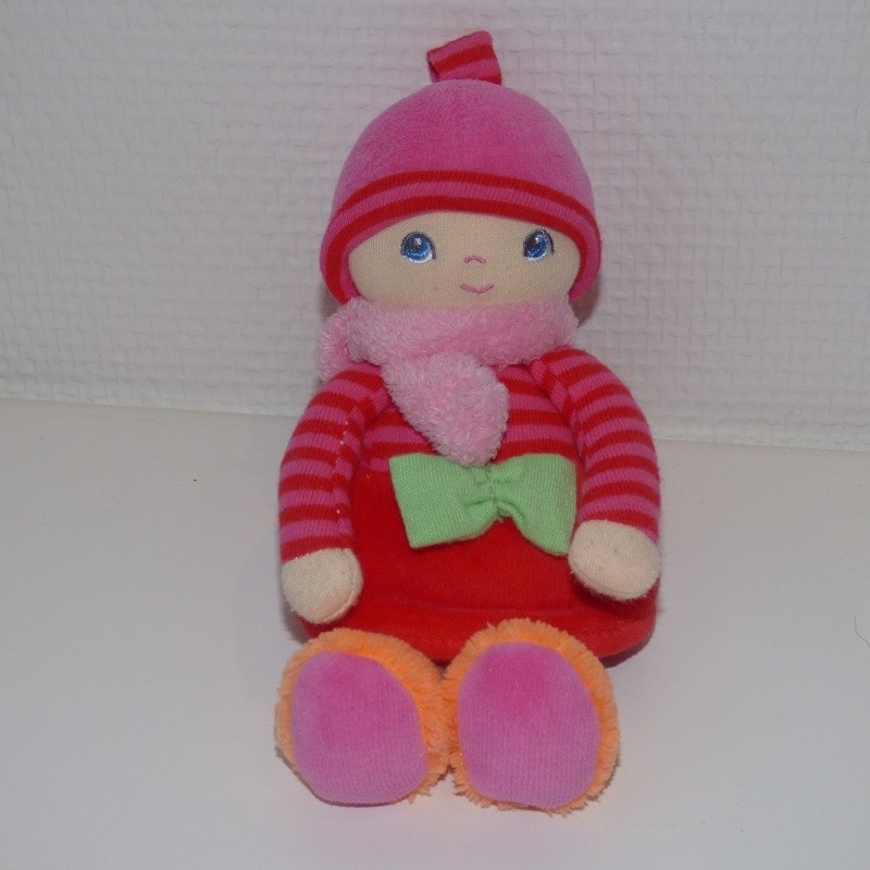 Doudou Lapin Plat Carré Blanc et Rose Teenie Star