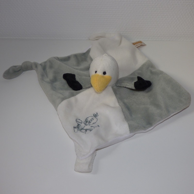 Doudou Mouette Plate Grise et Blanche Rodadou