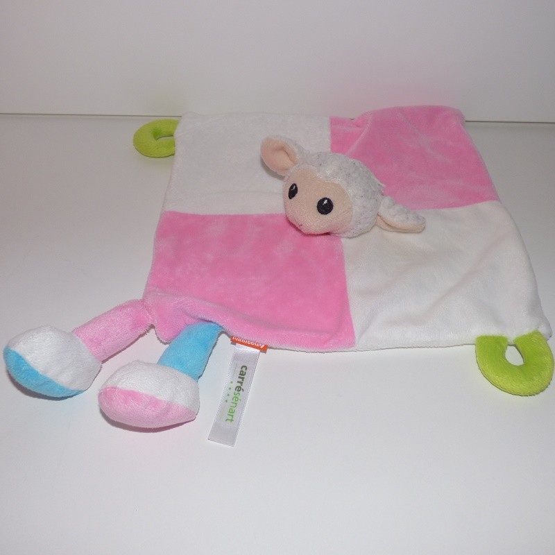 quantité de Doudou Mouon Plat Blanc et Rose Carré Sénart