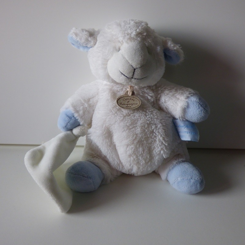 Doudou Mouton Blanc et Bleu Mouchoir Mon Tout Petit Doudou et Compagnie