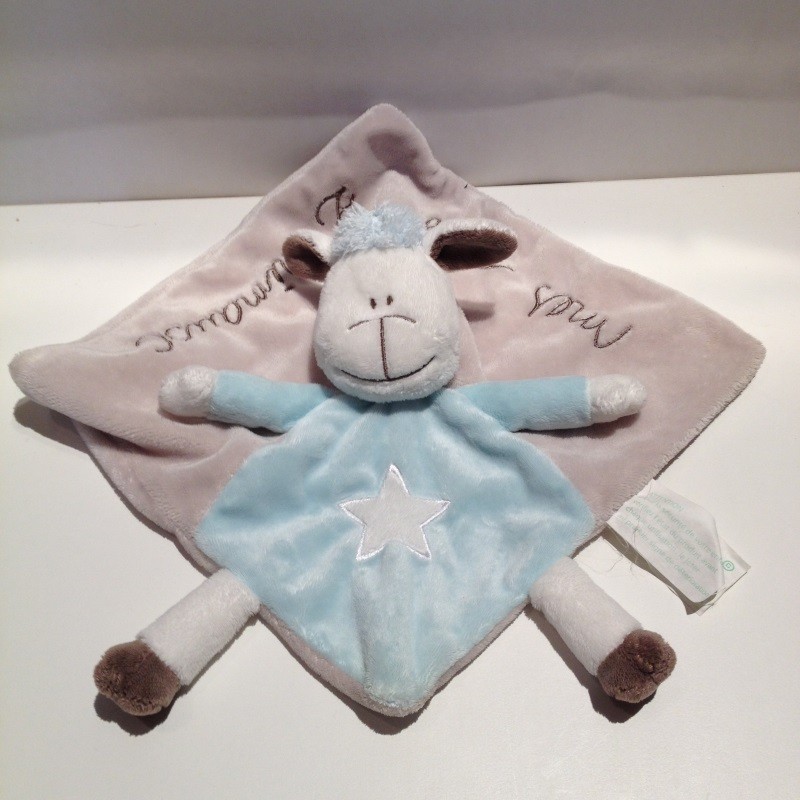 Doudou Mouton Plat Beige et Bleu mes petits z animaux Kimbaloo