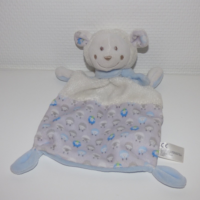 Doudou Mouton Plat Blanc et Gris Nicotoy